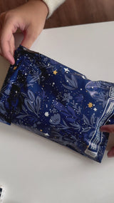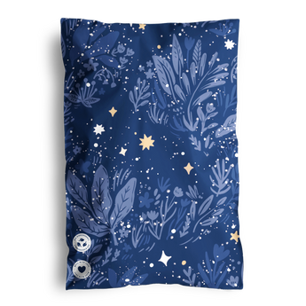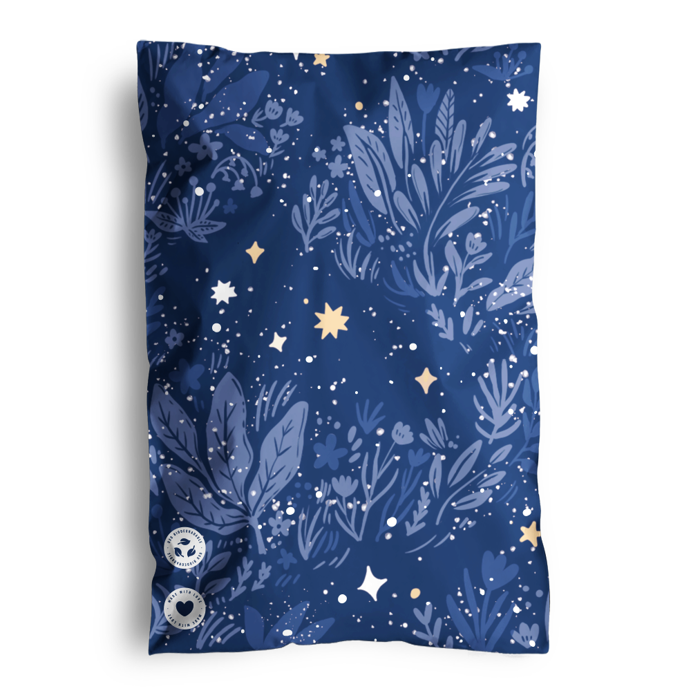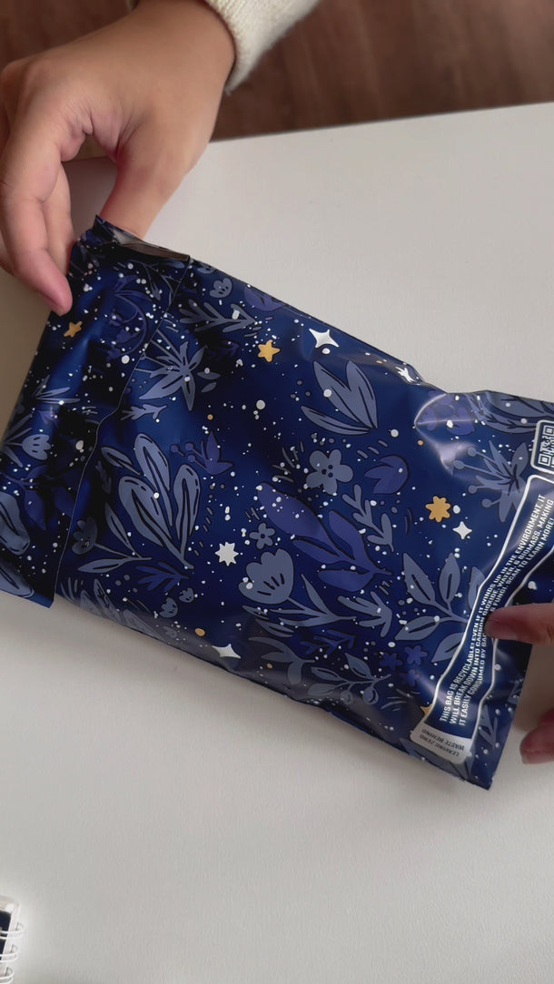 Design: The rich indigo background and intricate botanical and celestial motifs capture the allure of a starlit night, making each package feel like a piece of art.
