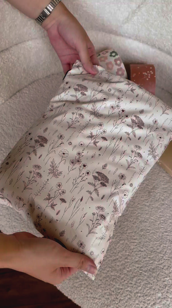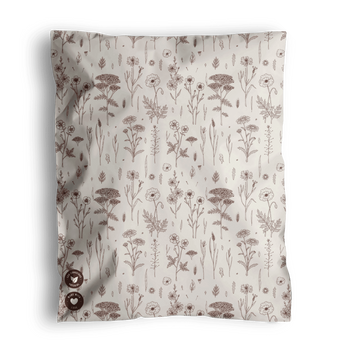 Design: The Wildflowers print brings a serene, meadow-like feel to your packaging with its delicate white floral illustrations against a warm beige backdrop. This design adds a touch of rustic charm and natural beauty, perfect for making your packages stand out.