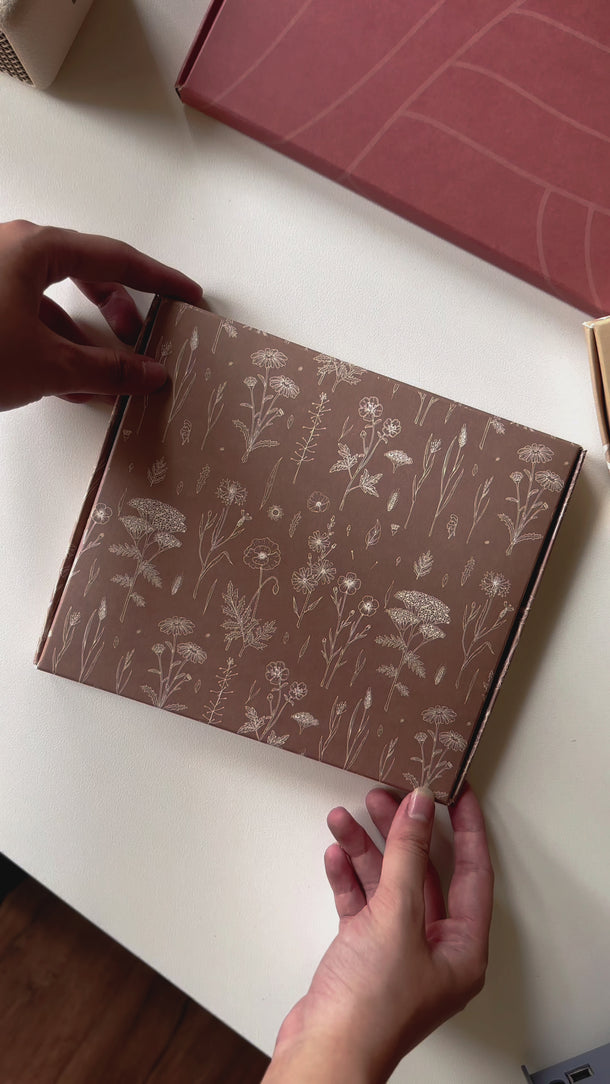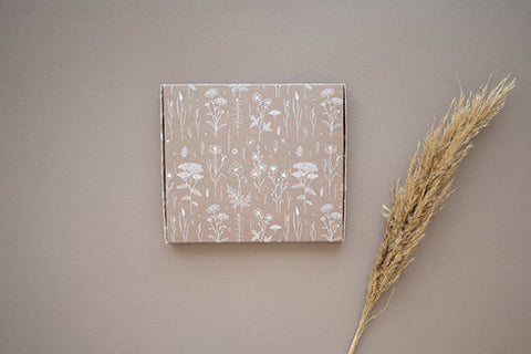 Design: The Wildflowers print brings a serene, meadow-like feel to your packaging with its delicate white floral illustrations against a warm beige backdrop. This design adds a touch of rustic charm and natural beauty, perfect for making your packages stand out.