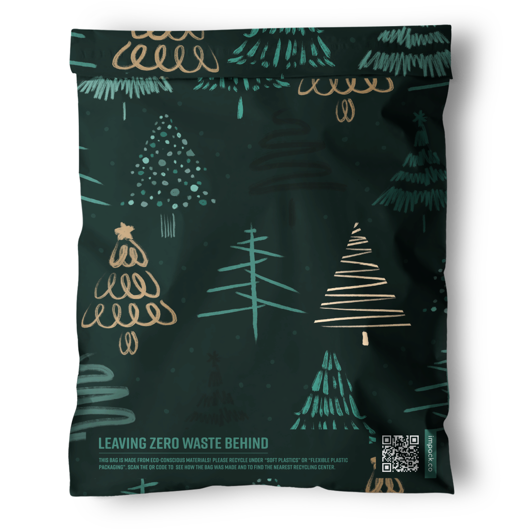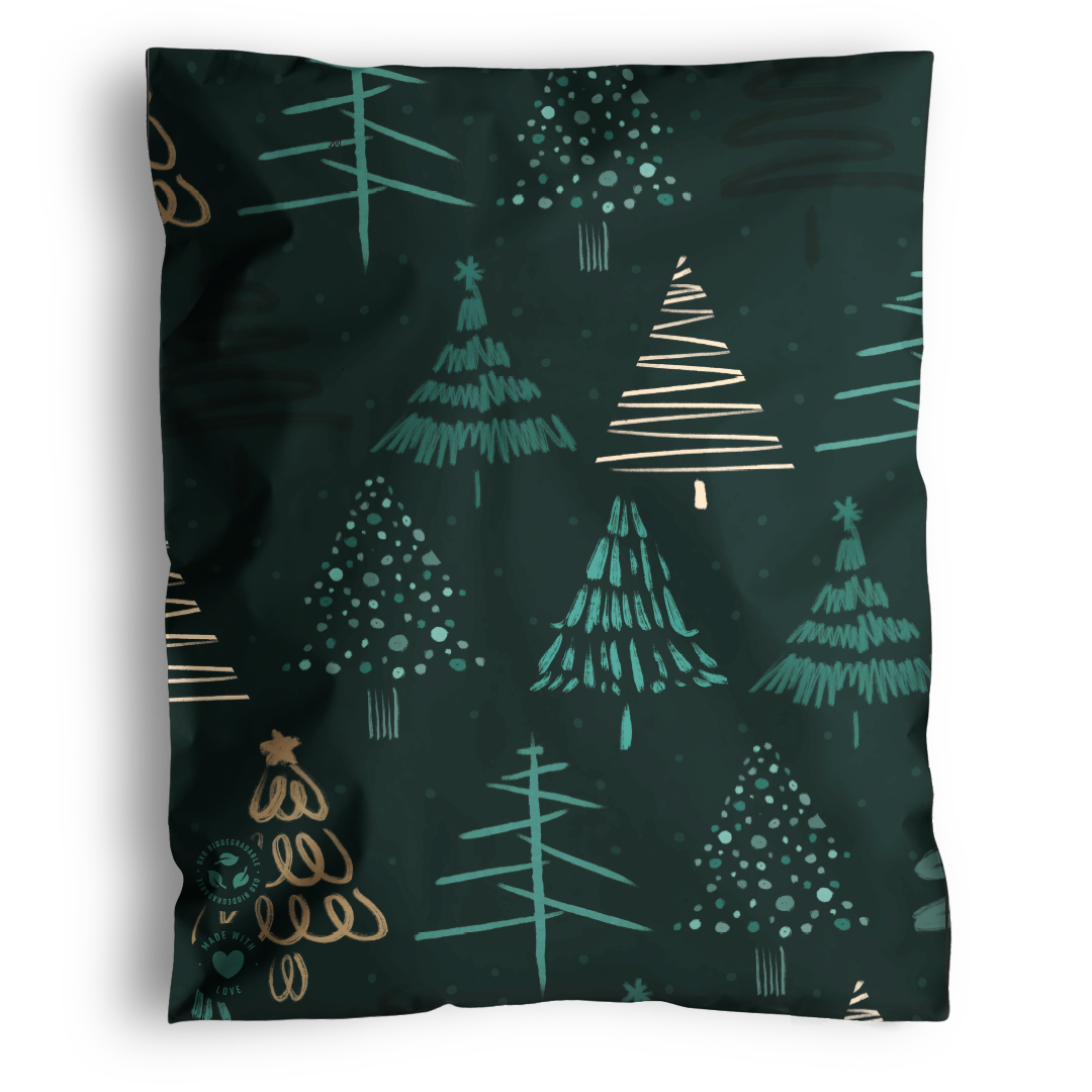 Design: Celebrate the season sustainably with our Pine Forest print. Set against a deep forest green backdrop, whimsical hand-drawn Christmas trees in soft teal and golden hues bring a touch of festive charm. This cozy yet elegant design captures the magic of the holidays while staying true to your eco-friendly values.