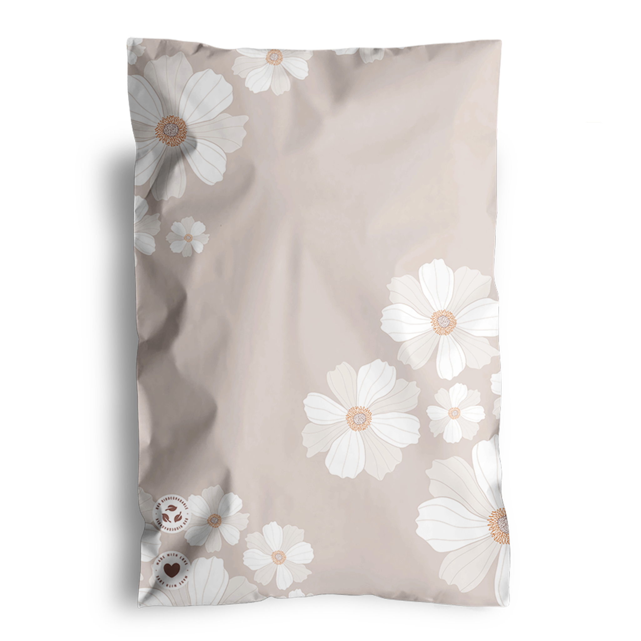 Design: With its subtle beige background and intricate white cosmos flowers, the Cosmos print brings a natural and refined elegance to your packaging. The delicate floral pattern is both charming and timeless.